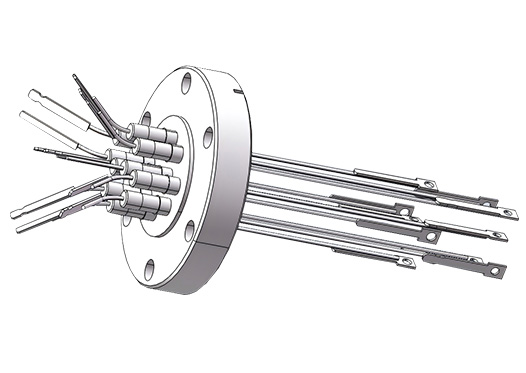 K型/C型熱電偶饋通設計可匹配OMEGA微型連接器,適用電壓為mV量級,適用電流為mA量級,熱偶饋通的絕緣體材質為氧化陶瓷,電極材質取決于相應的熱電偶對材料(K型/C型),溫度范圍-100~450℃,極限真空可達1E-10mbar。熱電偶對數量為5的K型/C型饋通推薦使用法蘭為CF40,可咨詢定制其他法蘭及饋通組合,或其他類型的熱電偶。也可選擇熱偶對數量為5的焊接版K型/C型饋通。K型/C型熱電偶饋通提供配套的大氣端連接器,可選真空端相關配件。